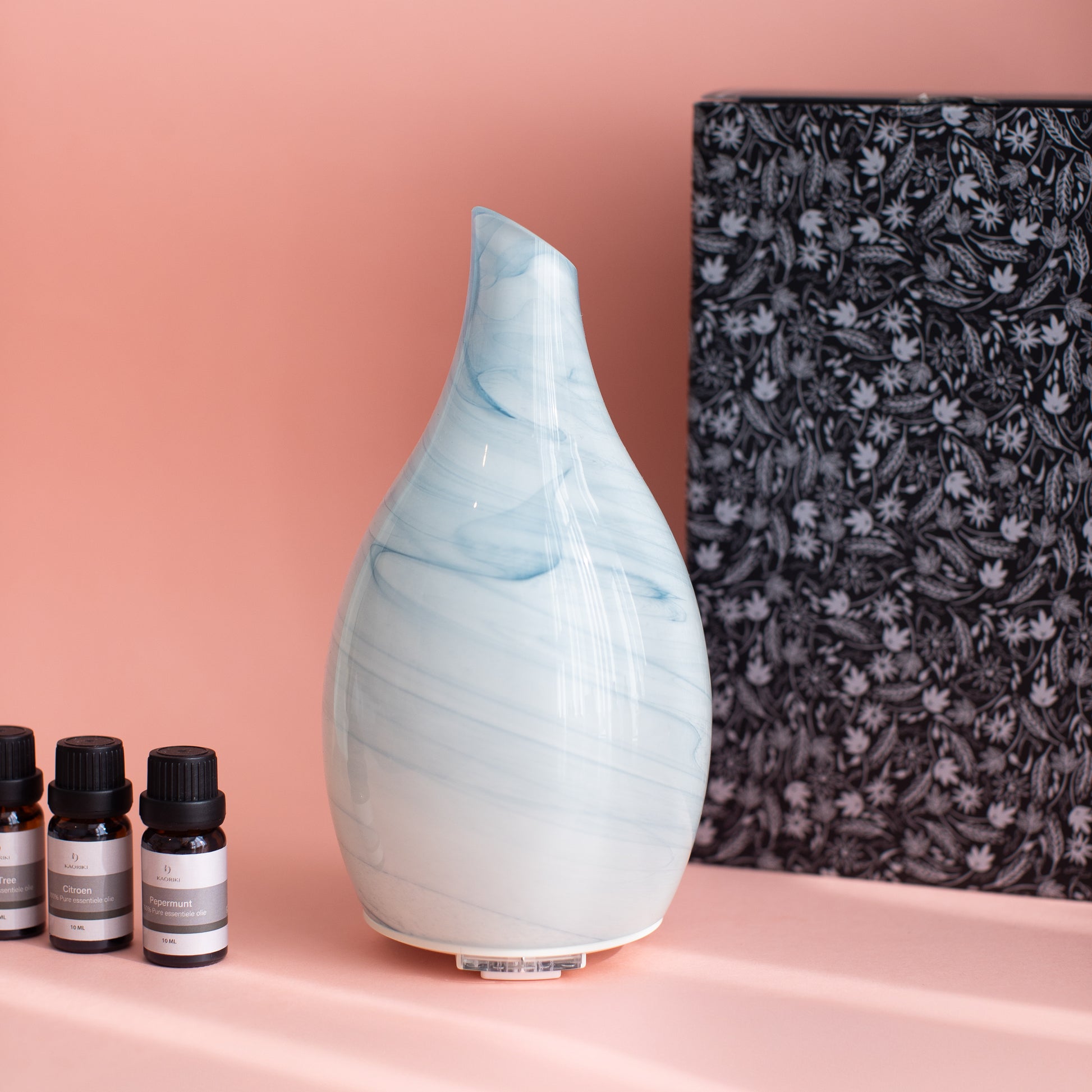 Can you recall a time when your mood instantly changed after smelling a particular scent? Perhaps the scent also triggered a specific memory? Then you've experienced the power of aromatherapy before. The enticing scent of essential oils is diffused throughout the room by an aroma diffuser. This way, you experience a relaxing feeling every time you enter the room. To complete that moment of relaxation, we introduce the Garasi Aroma Diffuser Night Light. Made of glass.