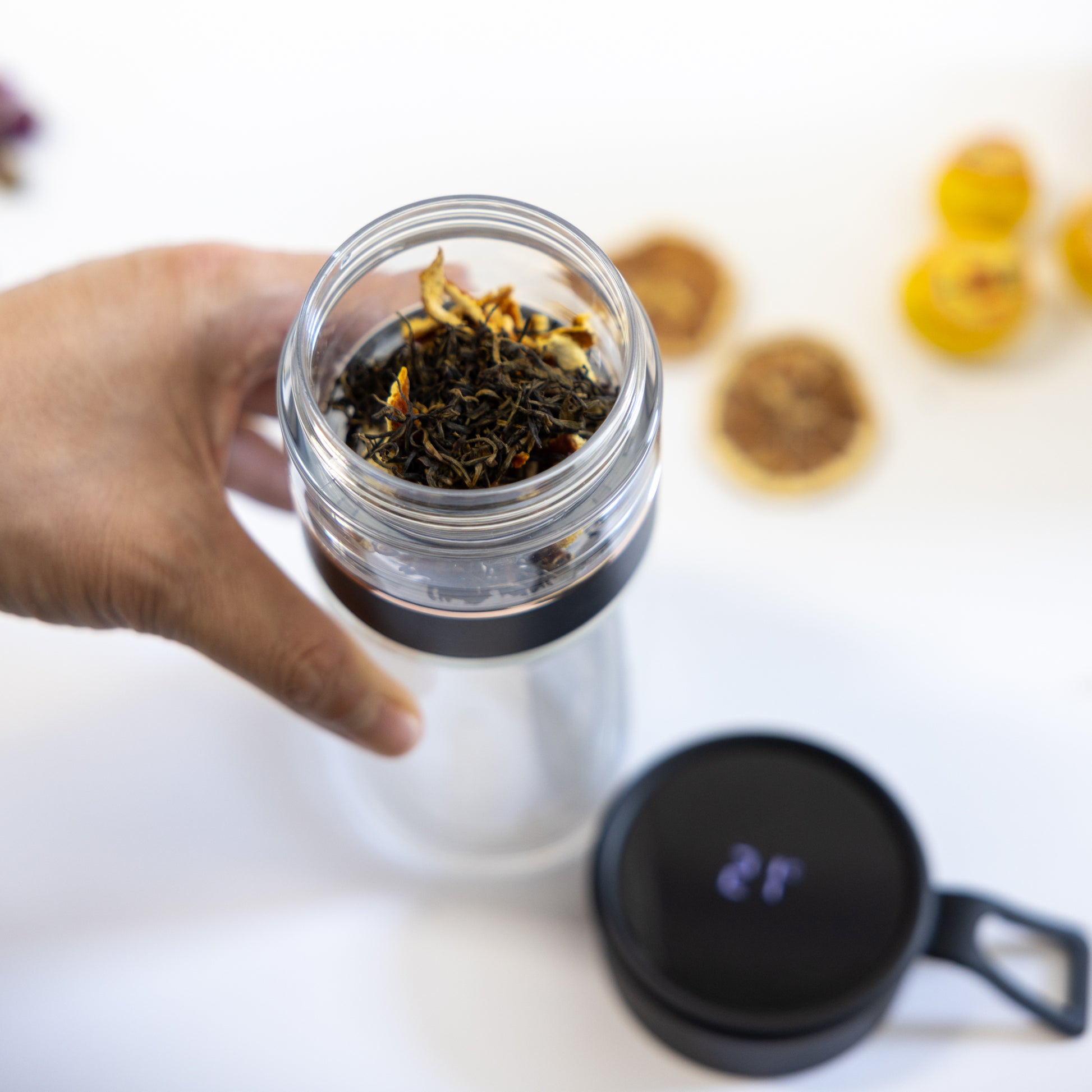 Thanks to the digital thermometer in the lid, you always know exactly how hot your drink is – ideal for tea, infusions or water on the go.