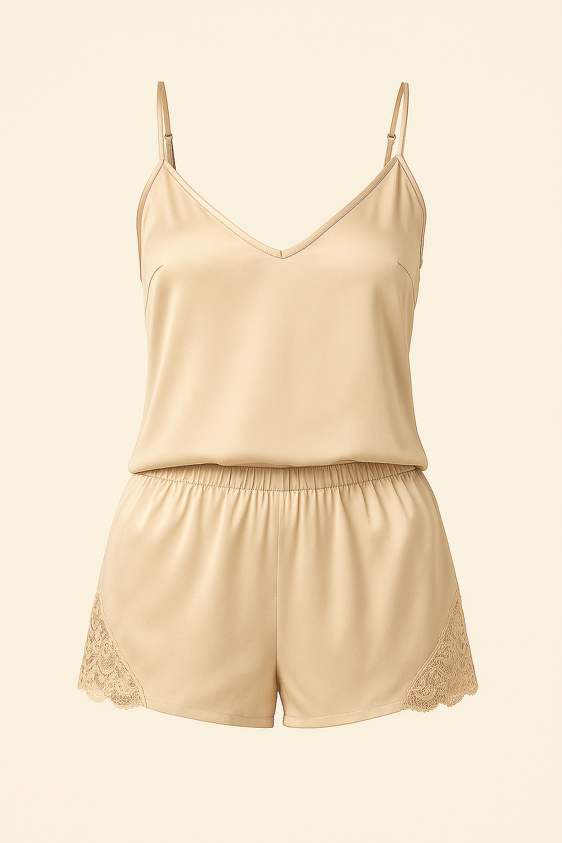 This elegant Kaoriki pajama set combines comfort and refinement in one soft touch. The top with a deep V-neck and adjustable straps fits effortlessly, while the lace details on the shorts add a touch of luxury. Lightweight, breathable, and perfect for spring and fall nights.